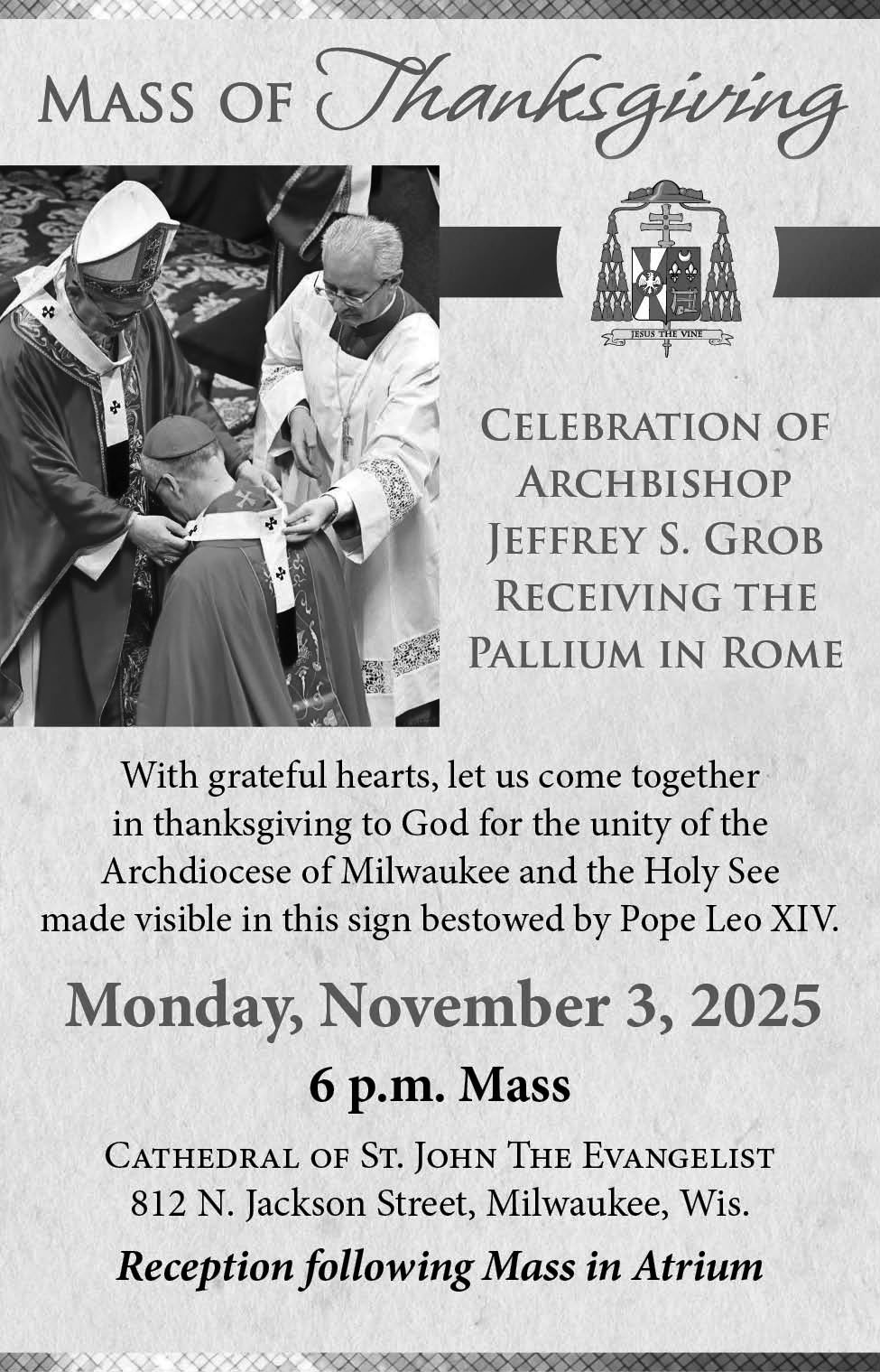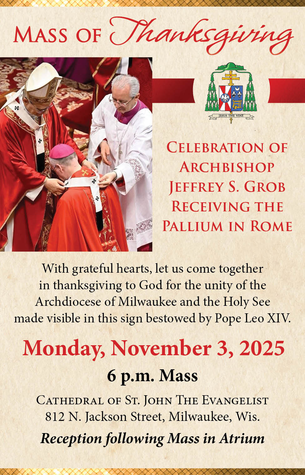 Use these bulletin announcements to promote the Mass of Thanksgiving - Celebration of Archbishop Jeffrey S. Grob Receiving the Pallium in Rome