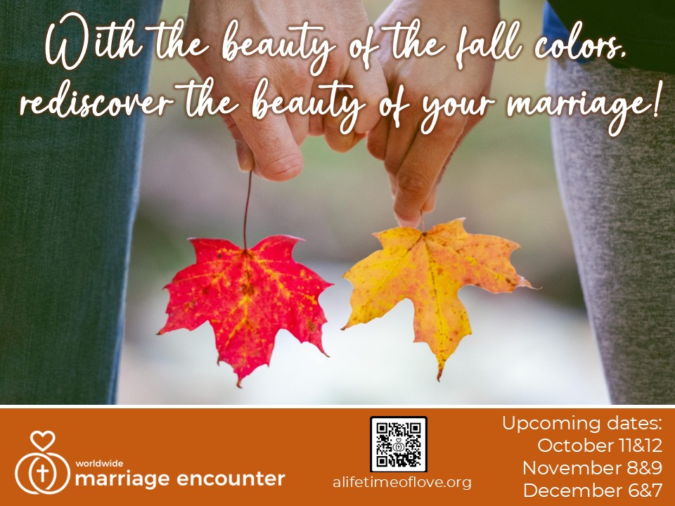 Fall in love all over again! Remember why you fell in love and learn tools to keep your marriage on the right path. Sign up today to attend one of the upcoming Worldwide Marriage Encounter Experiences on October 11 & 12 in West Bend, WI, November 8 & 9 in Neenah, WI, or December 6 & 7 in Stoughton, WI. Early registration is highly recommended. For more information, visit our website at alifetimeoflove.org or call (888) 574-5653.