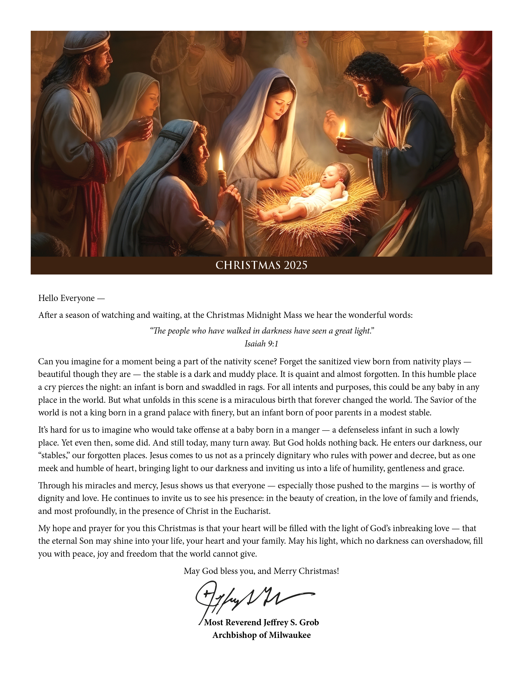 Archbishop Jeffrey S. Grob has written a Christmas message to the faithful of southeastern Wisconsin.